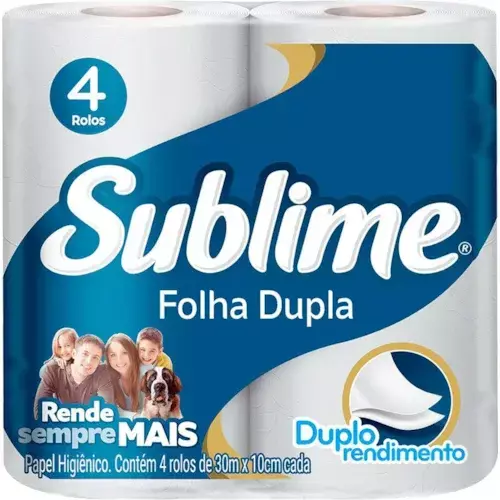 O Papel Higiênico Sublime folha dupla oferece maciez e resistência para uso diário. Cada embalagem contém 4 rolos de 30 metros, garantindo maior durabilidade e praticidade.